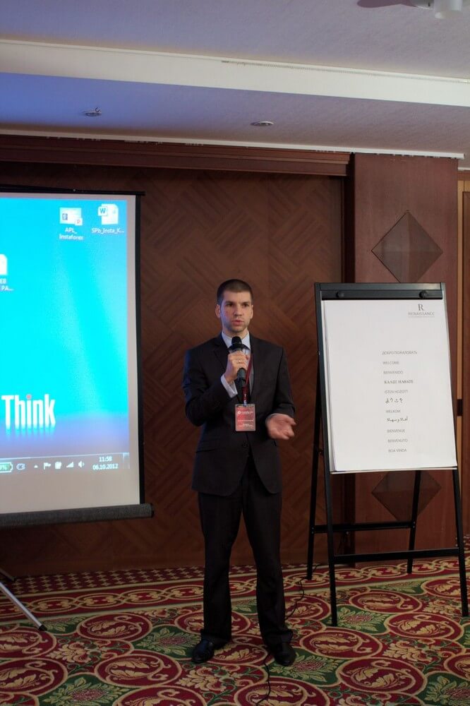6 октября 2012 года компания ИнстаФорекс провела в престижном отеле «Марриотт Ренессанс» города Санкт-Петербурга первую ежегодную бизнес-конференцию для своих клиентов и тех, кто намерен связать свое будущее с Форекс-трейдингом. Мероприятие, посвященное актуальным вопросам работы на валютном рынке и использованию современных технологий в торговле, посетило около 150 человек.